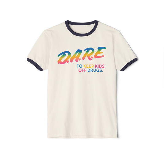 Colorful Retro D.A.R.E. Ringer Tee, Vintage 90s Neon DARE Logo Keep Kids Off Drugs Tee